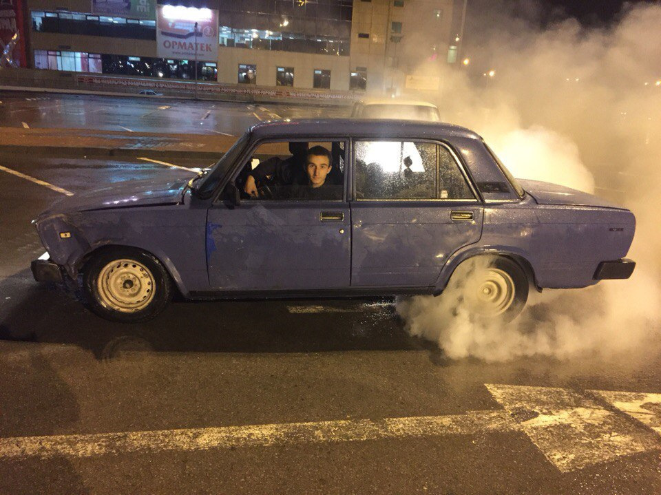 На сцене - водитель "семерки". По его маневрам понятно: он здесь, чтобы завоевать главную роль, пусть даже на фоне законов городской джунгли. По его борту видно, что он не один. Да, он тут в "семерке" - боевой раскрашенный корабль, и его команда - пассажиры, открыто наслаждающиеся летней атмосферой.
