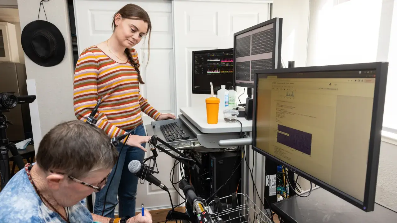 В другом исследовании, опубликованном в среду, участвовала женщина, которая не могла четко говорить из-за паралича после инсульта в 2005 году, когда ей было 30 лет. В сентябре 2022 года в Медицинском центре UCSF в Сан-Франциско ей вживили электродное устройство без хирургических осложнений.