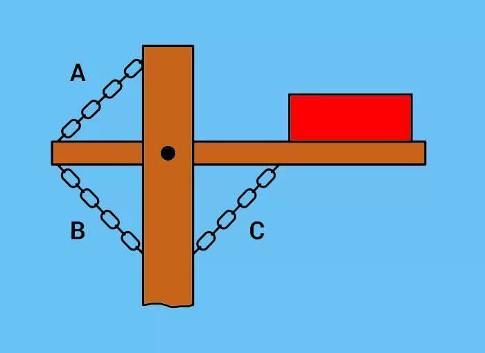 Мой ответ, что цепь А держит горизонтальную палку и поэтому кирпич не упадет.