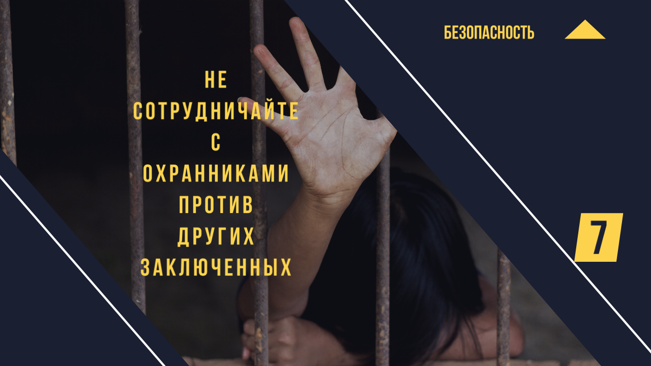 Сюда же можно отнести и возможность попасть под чье-то крыло –это почти наверняка приведет к тому, что вы станете жертвой изнасилования. Люди, предлагающие подобную помощь, либо ищут сопляка, либо ищут, кого бы прокачать. Не стоит также связываться с теми, кто имеет отношение к панкам. Ревность в тюрьме может привести к убийству.