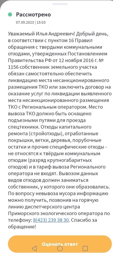 А дальше? Вы сообщили о несанкционированной свалке куда следует?