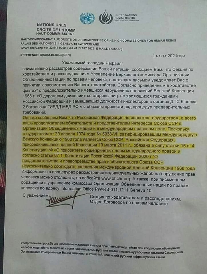 Кстати, вы тут кичились, что РФ является правопреемником СССР. Так вот, смотрите, что это означает на самом деле: "Однако, сообщаем Вам, что Российская Федерация не является государством, а всего лишь продолжателем обязательств и представителем интересов Союза ССР в Организации Объединенных Наций и международном правовом поле". Понятно? Ваша РФ не государство, а исполнитель обязательств по долгам СССР и представителем интересов СССР. Самостоятельного значения ваша РФ никакого не имеет. Ну, и где я кого ввел в заблуждение?