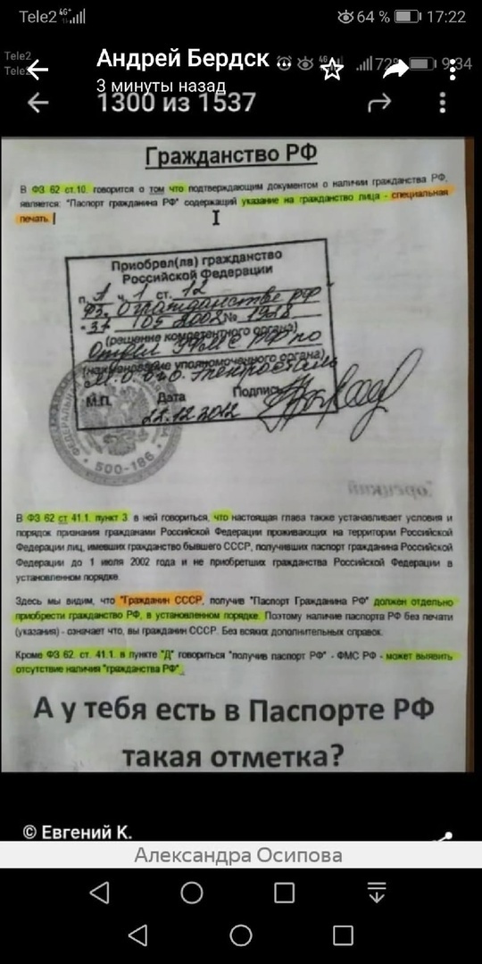 А вы что, не были гражданином СССР? Я, вот, был. А штампика гражданина РФ у меня нет. И более того, паспорт мне выдавала Миграционная служба как мигранту на территории РФ. И не мне одному. Это как, позвольте спросить?