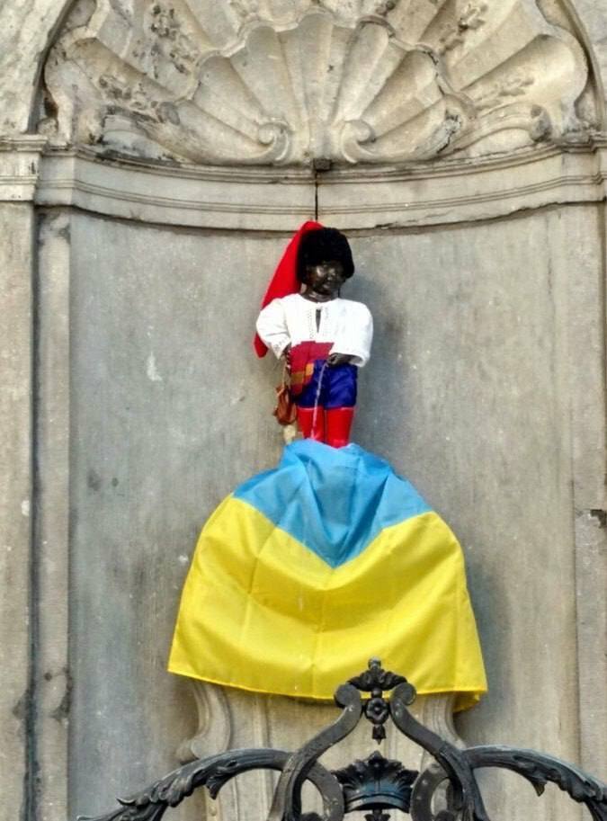 Народ Брюсселя не без юмора. Они взяли, да и одели знаменитого «писающего мальчика» в цвет флага России. И на что делает бронзовый ребёнок, вы видите сами.