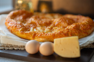 Хачапури по-имеретински имеют вид круглой сырной лепешки или пирога. Готовят их из дрожжевого теста, чтобы кругляш хорошо поднялся и стал пышным в процессе запекания.
