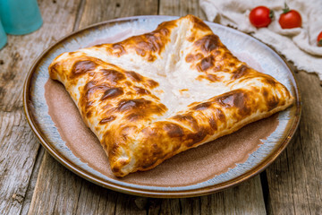 Это хачапурный новодел, изобретенный кулинарами на радость любителям фаст-фуда. Представляет собой слоеный хачапури с сыром и разными добавками. Закрытый пирог в форме конвертика или треугольника, который кое-кто называет грузинскими кальцоне, по аналогии с итальянской закрытой пиццей.
