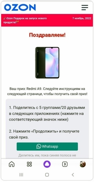 Мошенники активно используют мессенджеры и социальные сети для распространения своих обманных предложений. Одной из их распространенных схем является создание псевдо-предложений о закрытых акциях или «Мегарозыгрышах». В таких сообщениях обещаются огромные призы или возможность участия в эксклюзивных акциях, при условии выполнения определенных действий.