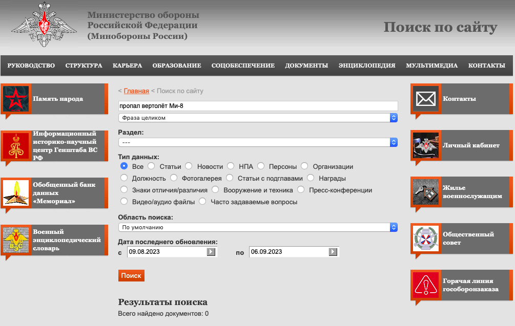 Смущает, что Минобороны молчит... Или я неправильно поиск веду по сайту?