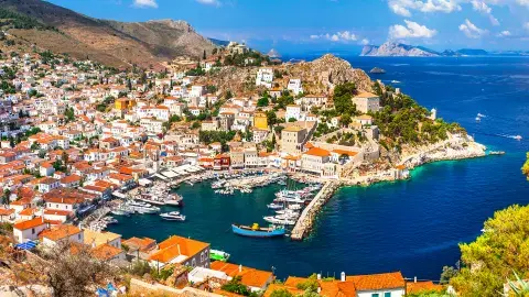 Живописная Деревня На Острове Гидра, Сароник, Греция.