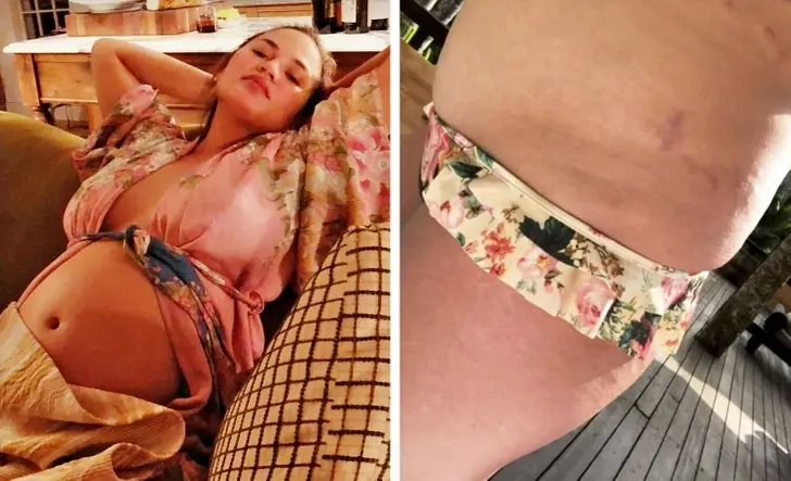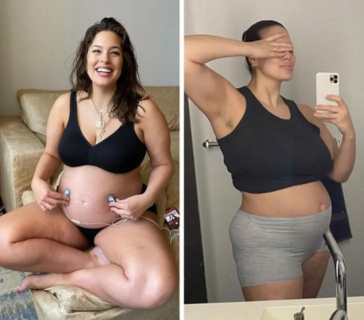 Бывшая модель и диджей Эшли Джеймс стала мамой двоих прекрасных детей - мальчика по имени Алфи и девочки Ады. Во время обеих беременностей знаменитость искренне делилась своим опытом в социальных сетях и публиковала фотографии, показывающие, как ее тело менялось. Левая фотография была сделана за несколько дней до родов, а правая - всего через 2 часа после рождения Алфи.