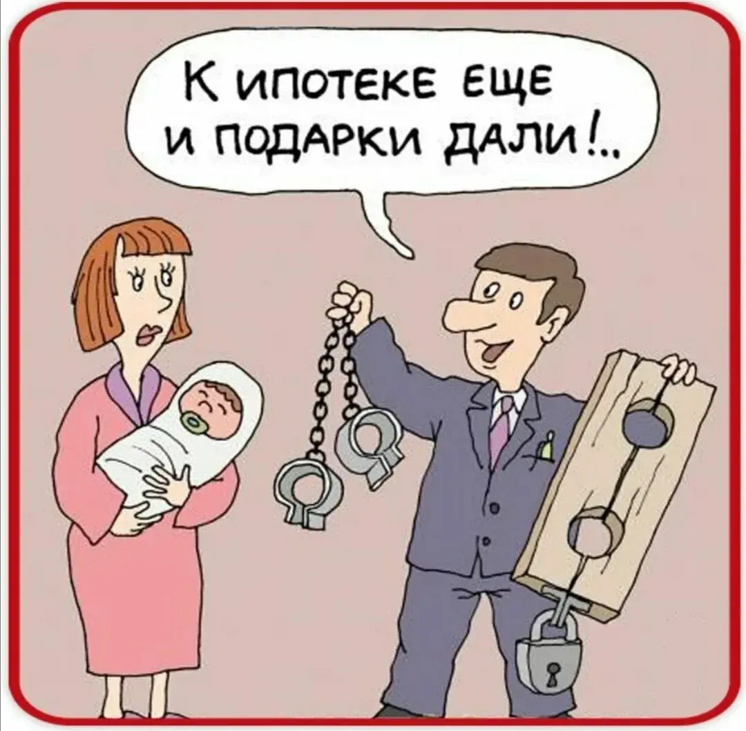 Во всём нужна золотая середина: для банков тоже не шоколадно давать на 30 лет кредит, который обесценится через лет пять за счёт инфляции. За это они и требуют такие сумасшедшие платежи, компенсируя инфляцию. Если десять лет назад 10 000 были суммой, на которую семья из 3—4 человек вполне могла прожить месяц (да затянув пояса, да экономя на всем, но тем не менее могла), то сейчас один поход в магазин заберёт столько же.