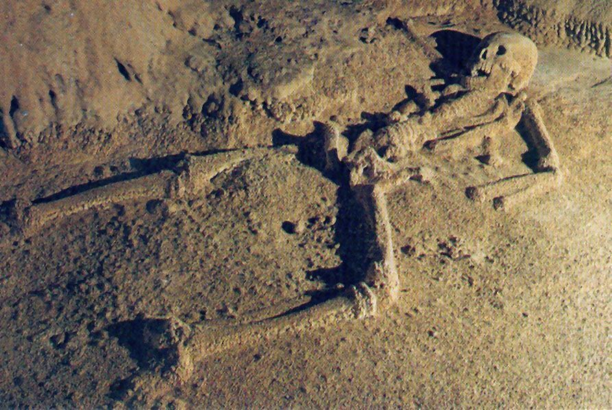 Днем они возобновили поиски и вскоре вышли к пещере. Заглянув внутрь, участники группы похолодели от ужаса – повсюду в пещере лежали скелеты: на полу, вдоль стен и даже на потолке, привязанные. И что характерно – у всех были проломлены черепа и грудная клетка. Пещера же, судя по всему, многие годы была необитаема и нога человека сюда не ступала давным-давно.