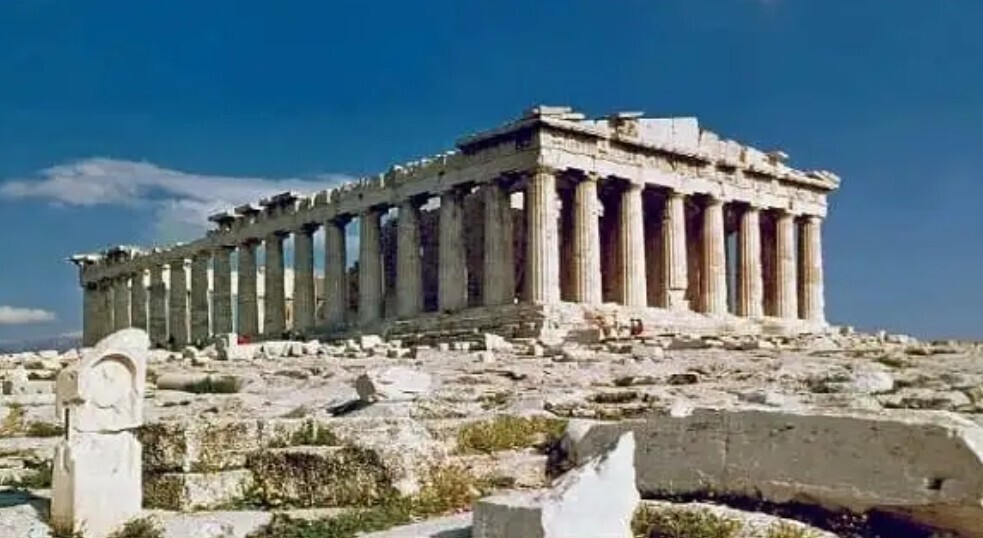 Самый большой храм (М.69,5 X П.30,87 X Ю.13,72 = Золотое сечение 4:9, Ю.13,72X9=125,28:4=П.30,87 или 30,87X9=277,92:4= М.69,48), с совершеннейшими гармоничными пропорциями дорического беспримерного художественного ритма. Единственный полностью мраморный храм, выполненный из пендельского мрамора. Обратите внимание, что крыша Парфенона была покрыта тонкими квадратными мраморными плитами, похожими на тонко вырезанные световые люки, через которые проникали лучи Солнца и освещали внутреннее пространство храма божественным неземным светом. До сих пор не открыта техника огранки лунных мраморов...