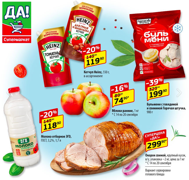 Например, в гипермаркете "ДА!" цена яблок за 1 кг составляет 75 рублей... Со скидкой (!).