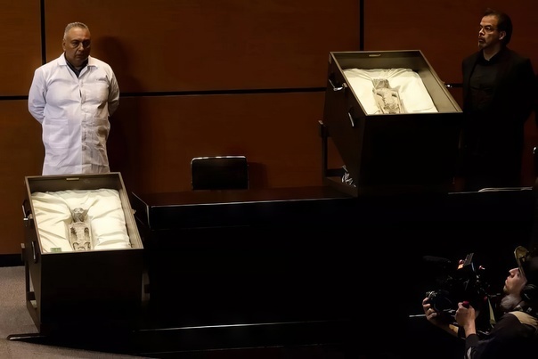В мексиканском Конгрессе были представлены две мумифицированные мумии неизвестных существ, возраст которых, по словам экспертов, составляет минимум 1000 лет. Эти загадочные образцы были доставлены из Куско, Перу, в столицу Мексики и выставлены на всеобщее обозрение под названием «трупы пришельцев». Это событие вызвало огромный интерес ученых и исследователей, так как считается, что обнаружение этих тел может служить убедительным доказательством существования инопланетян. У существ были непривычные трипалые конечности и они находились в небольших стеклянных гробах, что вызвало удивление у присутствующих.