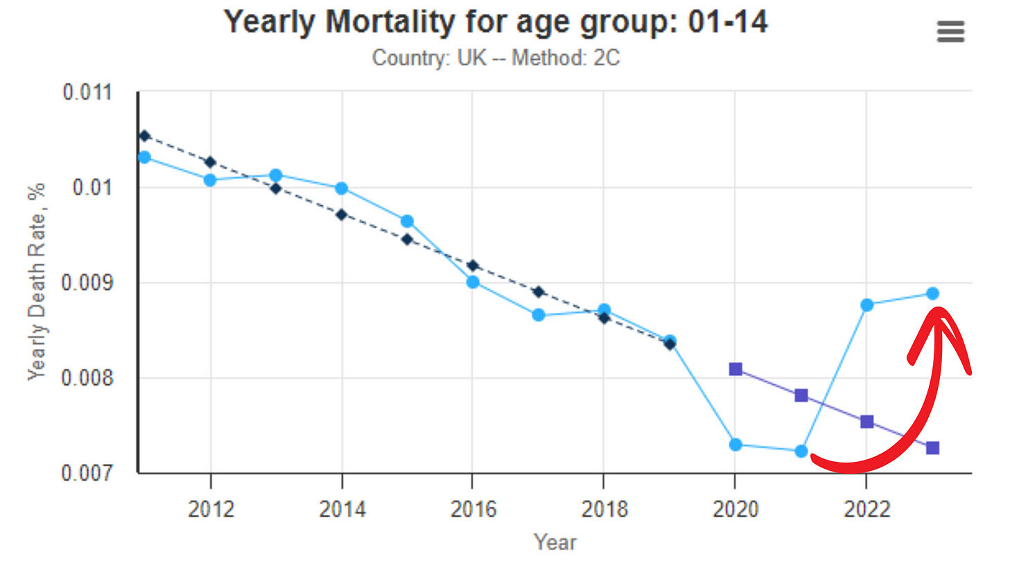 Резкий рост избыточной смертности среди детей в Великобритании после вакцинации против COVID-19 вызывает вопросы о том, почему власти не призывают к немедленному и тщательному расследованию. Они сказали нам, что меры по борьбе с COVID касаются «здоровья», так почему же они не расследуют причины гибели детей? Единственное правдоподобное объяснение, имеющее смысл, заключается в том, что они не хотят знать ответ .