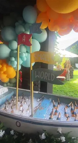 Хлоя, к которой присоединились 5-летняя дочь Тру и 13-месячный сын Татум, также показала огромный корабль It's A Small World, который был заполнен льдом и тоннами бутылок вина Whispering Angel и шампанского Veuve Clicquot.
