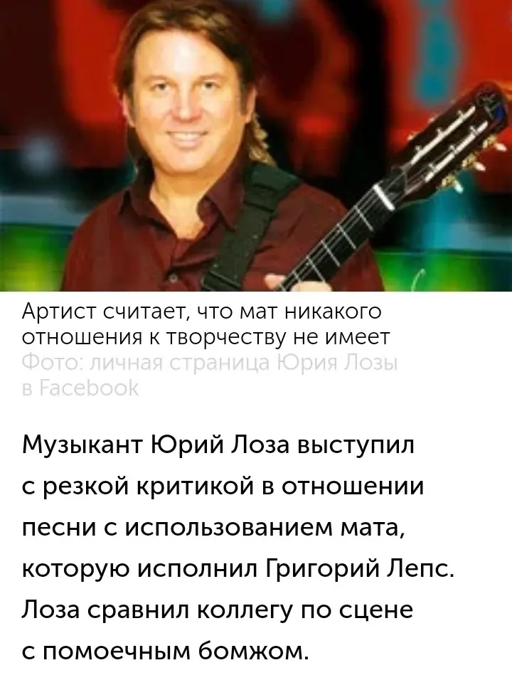 Название песни, которую исполнял Лепс "За... рожи" и текст этой песни об офисных работниках, где мат на мате, невозможно привести по цензурным соображениям. Певец и композитор Юрий Лоза очень метко сравнил Лепса после его матерщинной песни - с помоечный бомжом, пьющим за сараем и добавил, что мат никакого отношения к культуре и творчеству не имеет.