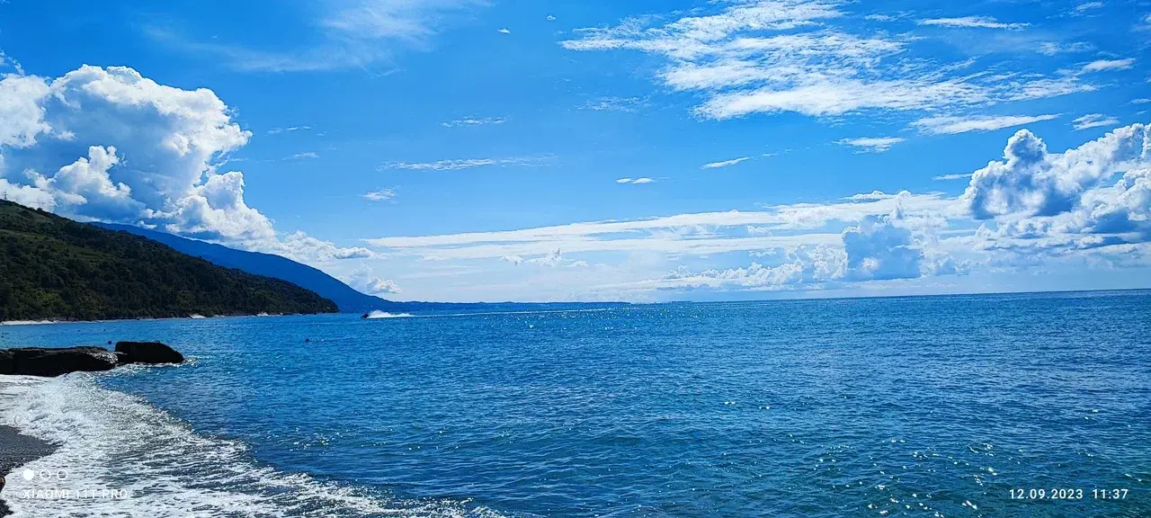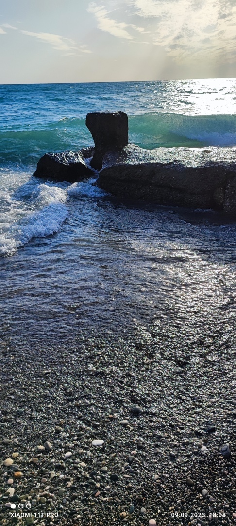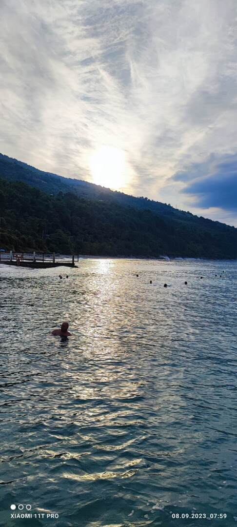 Багрипш в переводе означает Холодная Речка. Сказать что вода здесь чистая означает не сказать ничего. Вода здесь не просто чистая а кристально чистая горная вода приятная на вкус, да можете брать кружку и зачерпывать прямо из потока. По ощущениям - ледяная. Придает огромный заряд энергии, как будто батарейки зарядили, чувствуешь себя динамо-машиной, кажется что из тебя сыплются искры энергии. Вместе впадения речки ледяная вода перемешанная с очень теплой морской создает непередаваемый контраст ощущений плюс согревающий Киндзмараули внутри который можно приобрести в ста метрах от моря))).