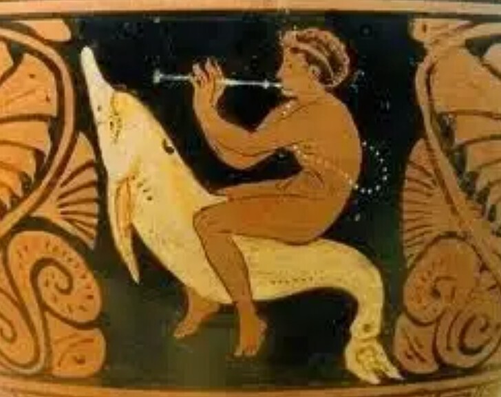 Кто не знает историю Ариона Лиродского из Митимны на острове Лесбос? Об этом пишет отец истории, как его называет Геродот: Арион, известный своей лирой по всему Средиземноморью, был нанят для игры при дворе коринфского царя Периандра. Однажды, когда он возвращался из довольно прибыльного плавания из Италии в Коринф, команда набросилась на него и стала угрожать выбросить его за борт, чтобы забрать деньги. Он же, видя, что его жизнь в опасности, попросил в качестве последнего одолжения сыграть на его лире. Когда закончилась последняя нота, Арион прыгнул в море. Но он не утонул. Его спасла стая дельфинов, которые, завороженные музыкой, собрались вокруг корабля. Они перенесли его на своей спине на берег. Вернувшись во дворец, он рассказал свою историю, но царь не поверил, пока корабль не прибыл в порт и моряки не поклялись, что оставили Ариона в Италии и он здоров.