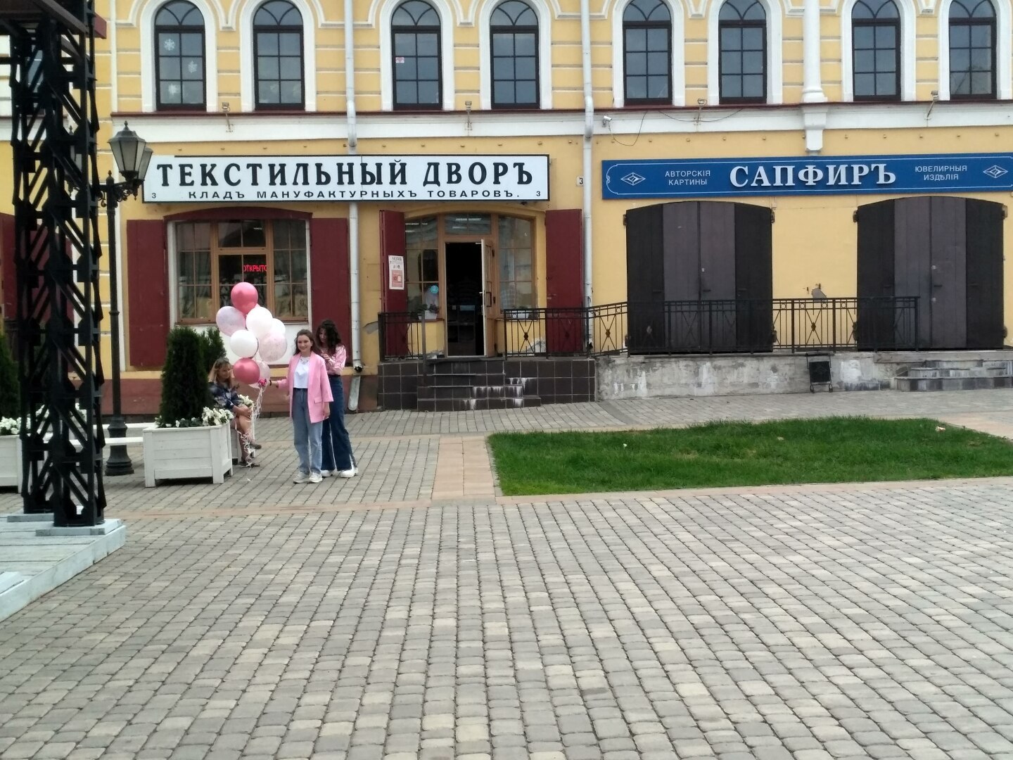 Выглядит очень мило. Хотя предприимчивые торговцы над магазином делают вывеску «в стиле», а на окно вешают неоновый баннер – вот вам и дореволюционный стиль, ага. Но и это выглядит куда лучше, чем наши облупившиеся здания в центре города….