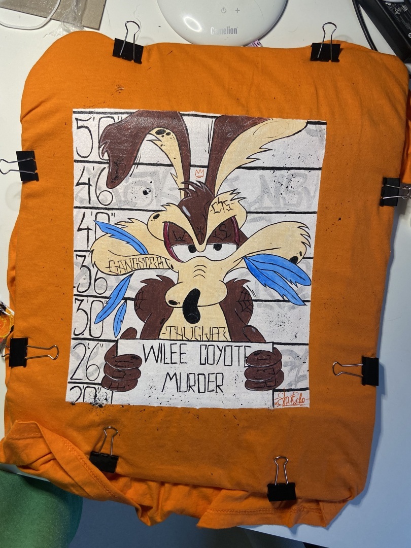 Тем временем моя мама отдала мне эту оранжевую футболку. Просто футболка, старенькая, без рисунков.