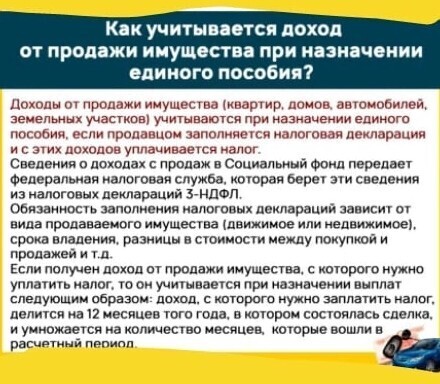 💰Единое пособие и доход от продажи имущества 🚘🏠