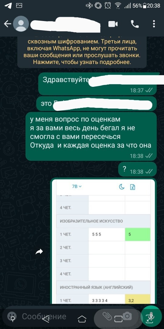 Я увидела оценки в дневнике которые свалились с бухты-барахты ну ладно меня не волновали оценки поведение самого учителя. Как она поступает с учениками.
