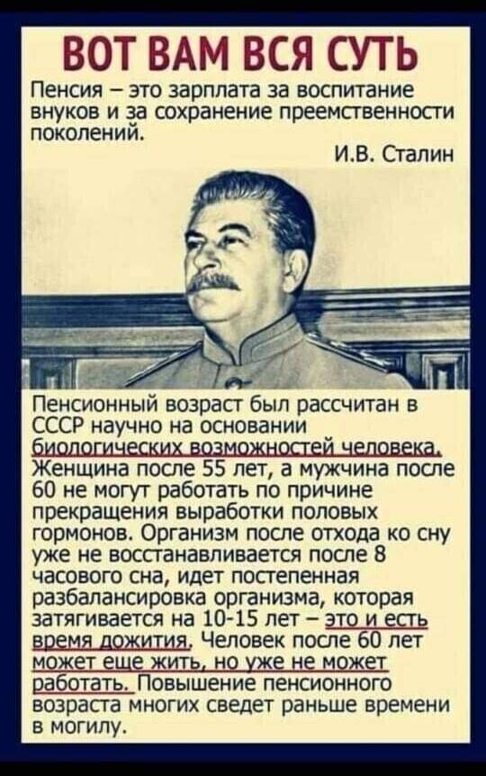 Как бывший работник ПФР точно знаю, что граждане при выходе на пенсию в 55 и 60 лет не бросали работать, наоборот, начинали "копить на старость", ещё когда не было никаких банковских карт все исправно зачисляли пенсии на сберкнижку в Сбербанк. Биологически сейчас дольше люди трудоспособные, чем 55 и 60 лет, но поднимать возраст было неправильно буквально перед выходом, на западе при подобных реформах возраст поднимают загодя, когда человеку ещё работать лет 30, у нас же человеку выходить через 1-5 лет, а ему отодвигают и уже не успеть накопить.