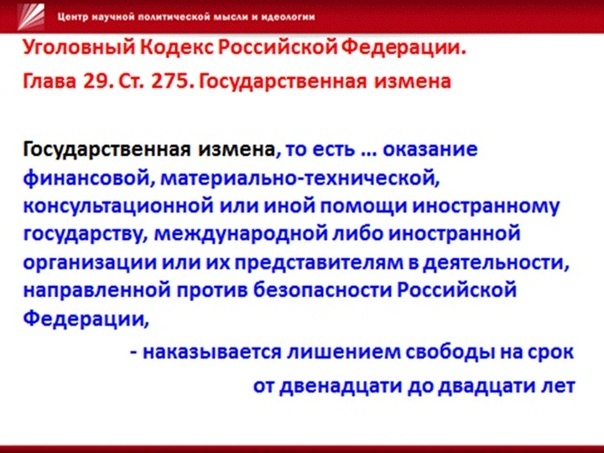 • Помощь BCУ (ст. 275 УК РФ, госизмена).