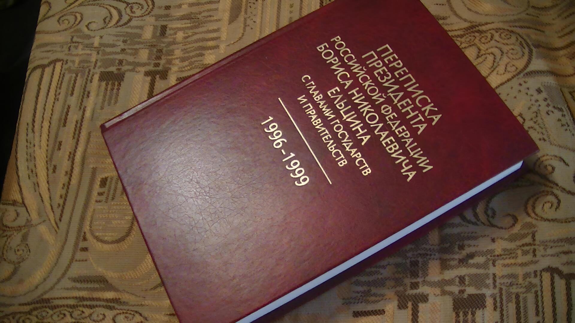 Летом к нам из Екатеринбурга заезжала Танина школьная подруга с мужем. Они подарили толстую книгу, купленную в Ельцин-центре. «Переписка президента Ельцина с иностранными президентами в 96–99 гг.» (тираж 5000 экз.)