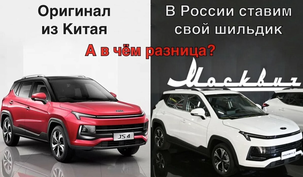 Ставший уже, ну просто легендарным на всю нашу страну автомобиль «Москвич», да, который является абсолютным клоном и копией китайского автомобиля - он здесь в России стоит 2.400 000 руб., а в Китае 1 300 000руб.. Представляете, вот этот автомобиль абсолютно готовый, он в Китае сошёл с конвейера, его покрасили, собрали, целлофаном обернули - у него отворачиваются колёса, привозят сюда в Россию, обратно колёса прикручивают, лепят лейбл «Москвич». И вот, за это всё - цена увеличивается практически в два раза. Собственно, что касается темы отечественного автопроизводства, оно, как говорится, в ужасном состоянии, без слёз не взглянешь.