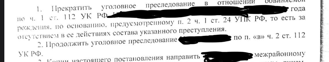 Дарья, все правильно указано. Была первая часть, стала вторая. По первой части прекращают уголовное преследование.