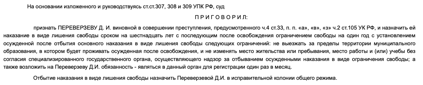 У исполнителя убийства – пожизненное заключение, из которых первый десяток лет он отбывает в тюрьме, но скоро отправится в исправительную колонию особого режима.