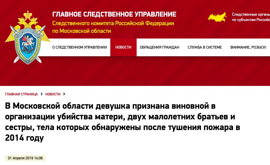 Приговор дочери погибшей был вынесен спустя пять лет после пожара 10.09.2019 Московским областным судом. Срок – 16 лет лишения свободы.