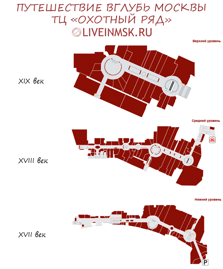 Но это не единственное отличие. Если раньше покупатели проходили по торговым рядам под открытым небом, то сейчас спускаются в панорамных лифтах. Вообще торговый комплекс «Охотный ряд» один из немногих в мире, по крыше которого можно ходить. Дело в том, что это подземный торговый центр. Первый проект строительства торгового комплекса «Охотный ряд» и реконструкции русла Неглинки разработал Б.Г. Улькин. Хотя проект одобрили, он был невыполним. Психологи на основе многочисленных исследований