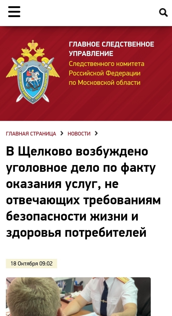 Следователем следственного отдела по г. Щелково ГСУ СК России по Московской области по результатам проверки возбуждено уголовное дело по признакам состава преступления, предусмотренного п. «а» ч. 2 ст. 238 УК РФ (оказание услуг, не отвечающих требованиям безопасности жизни и здоровья потребителей).