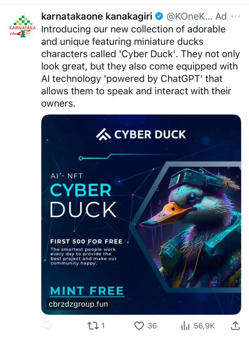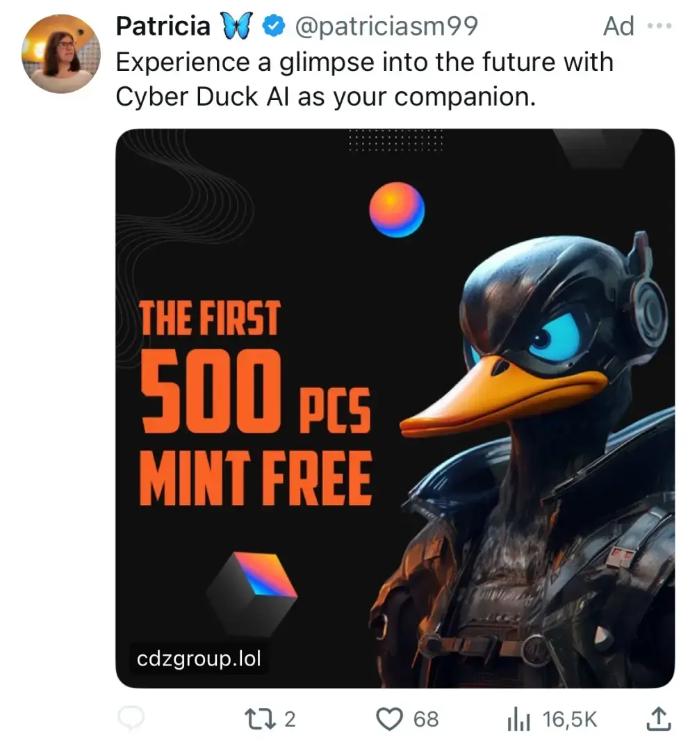 Вот один из примеров мошеннической рекламы на «X», которая находится в моей ленте.