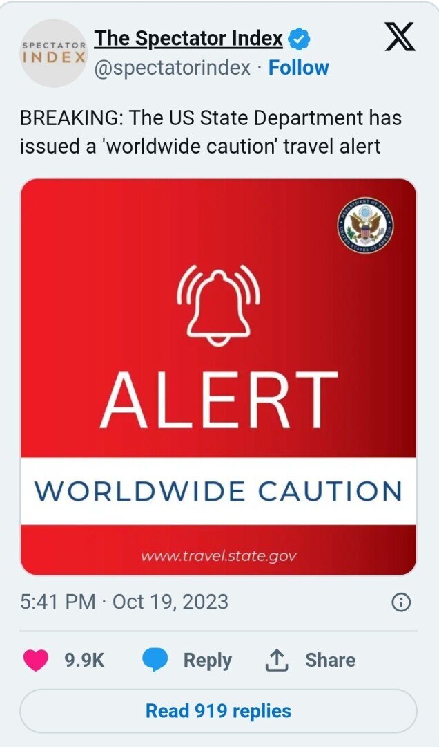 После эвакуации своих граждан из этого района теперь объявлено общее предупреждение о невыезде.
