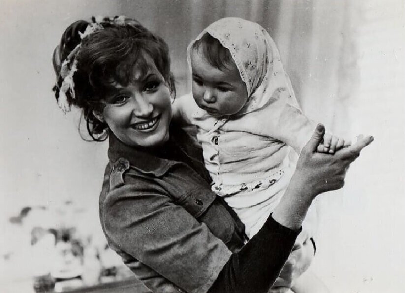 А это - начинающая певица Алла Пугачева с дочерью Кристиной, родившейся в 1971 году. С октября 1969 по ноябрь 1973 года она состояла в первом браке с артистом цирка Миколасом Эдмундасом Орбакасом. Тогда ее фамилия была Орбакане, но на концертах она выступала по своей прежней фамилией.