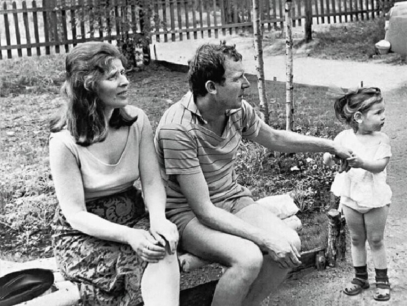 Эта фотография сделана в 1967 году и на нем актер Иннокентий Смоктуновский со своей женой и дочерью Машей. Снимок сделан на даче в окрестностях Ленинграда, в поселке Горьковский. Сюда актер часто приезжал на отдых со своей семьей.