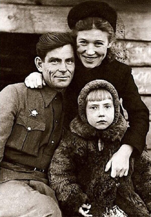 На этом фото - будущая актриса Жанна Болотова с родителями Андреем Ивановичем и Зинаидой Константиновной. Отец был участником Великой Отечественной войны и в 1944 году стал Героем Советского Союза. В кино Жанна дебютировала в возрасте 16 лет, снявшись в 1957 году в фильме "Дом, в котором я живу".