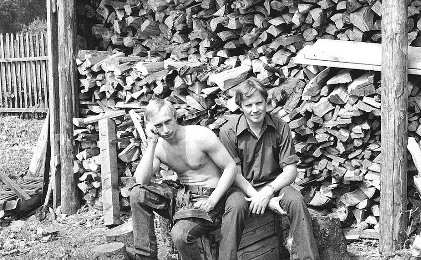 Один из молодых людей на этом фото хорошо узнаваем, хотя с тех пор прошло более полвека. Оказывается, будучи студентом юрфака ЛГУ Владимир Путин в 1972 году работал в составе студенческого стройотряда в одном из сел Коми АССР. То есть, это было после второго курса, поскольку учился он в этом вузе с 1970 по 1975 годы.