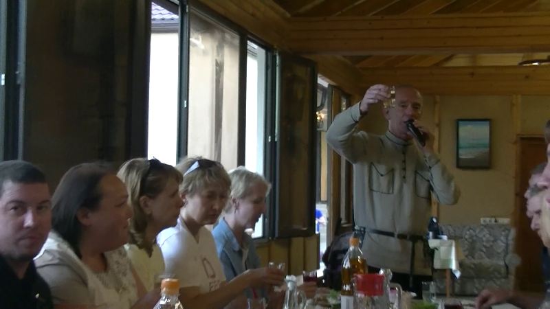 Стол был просто прекрасен: накрытый красивой скатертью, уставленный со вкусом и угощениями. На кавказском застолье собрались туристы из разных уголков России, Донбасса и даже из Белоруссии. Публика оказалась жизнерадостной и наполненной энергией, и сразу было видно, что они приехали сюда, чтобы насладиться прекрасной жизнью. Все вокруг переполнял размах и желание пожить ярко и красиво.