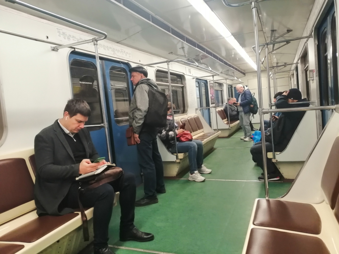 Для сравнения, публикую фото вагона московского метро. Увы. Проигрывает. Хотя тоже чисто. Но вагоны маленькие и неудобные.