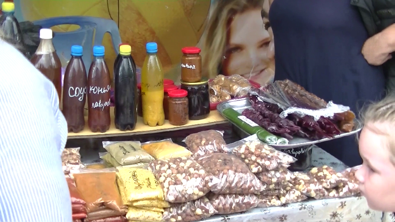 По пути к храму мы прикупили кое-что, так как цены В Лыхнах чуть ниже, чем в городах Абхазии, тем более купили продукты местного производства.