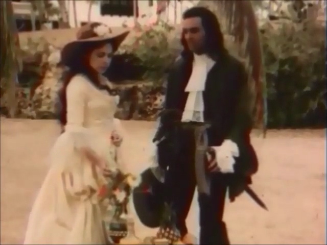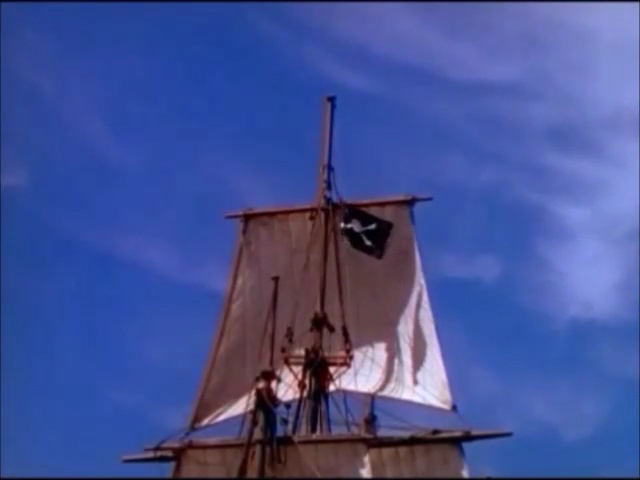 В качестве видеотрека я использовал в основном фрагменты из, видимо, последнего советско-французского фильма «Одиссея капитана Блада». Он вышел в 1991 году, но был показан на российском телевидении только в 1997 году.