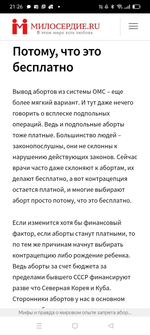 Запрет на аборты-это либо крайнее радикальное вынужденное решение в целях повышения рождаемости либо сознательное уничтожение населения России под видом созидания.