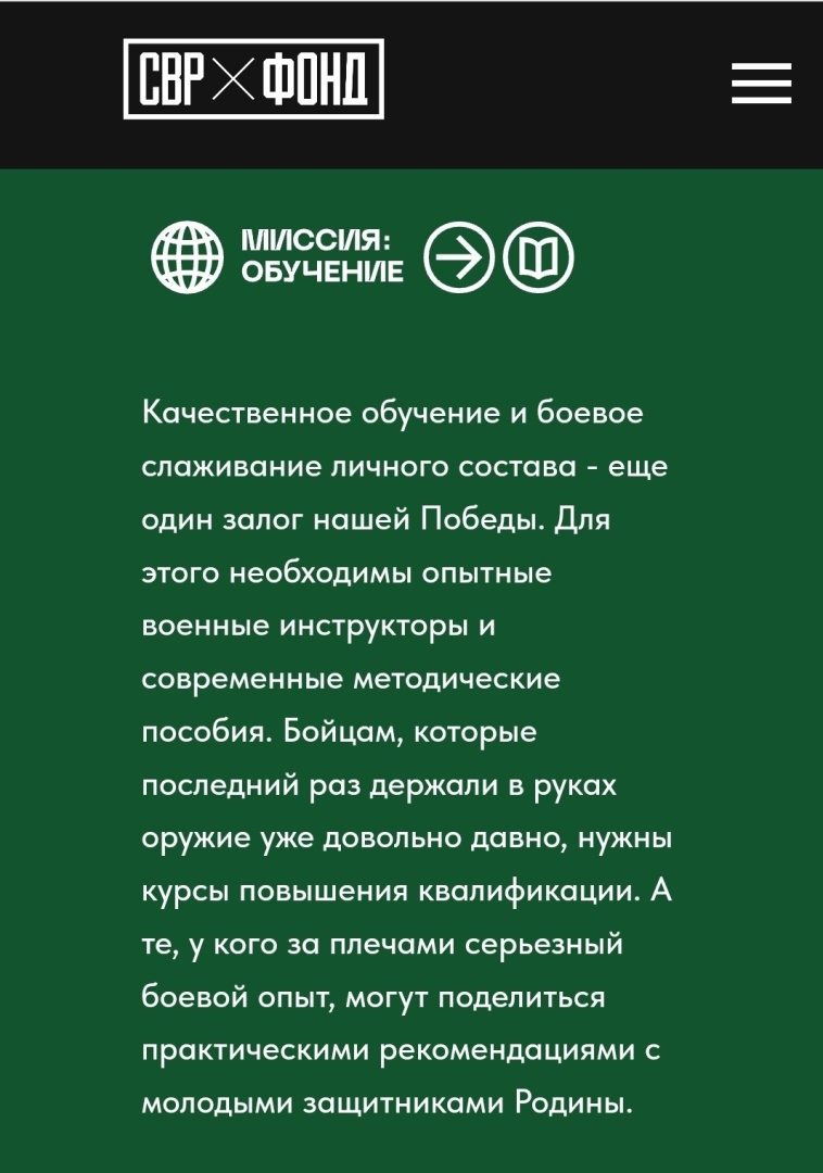 Качественное обучение и боевое слаживание личного состава - еще один залог нашей Победы. Для этого необходимы опытные военные инструкторы и современные методические пособия. Бойцам, которые последний раз держали в руках оружие уже довольно давно, нужныкурсы повышения квалификации. А те, у кого за плечами серьезный боевой опыт, могут поделиться практическими рекомендациями с молодыми защитниками Родины."