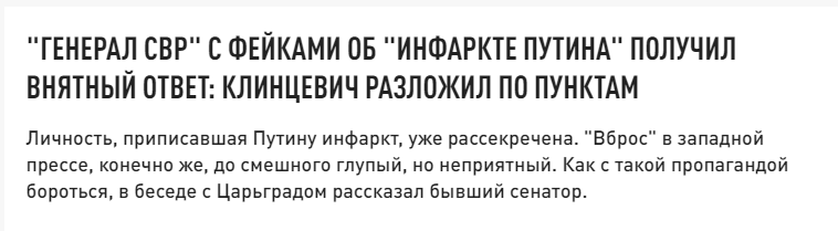 Экс-сенатор Франц Клинцевич, заявил, что информация о "болезни президента", похожа на информационно-психологическую и направлена на расслабление обстановки в России.